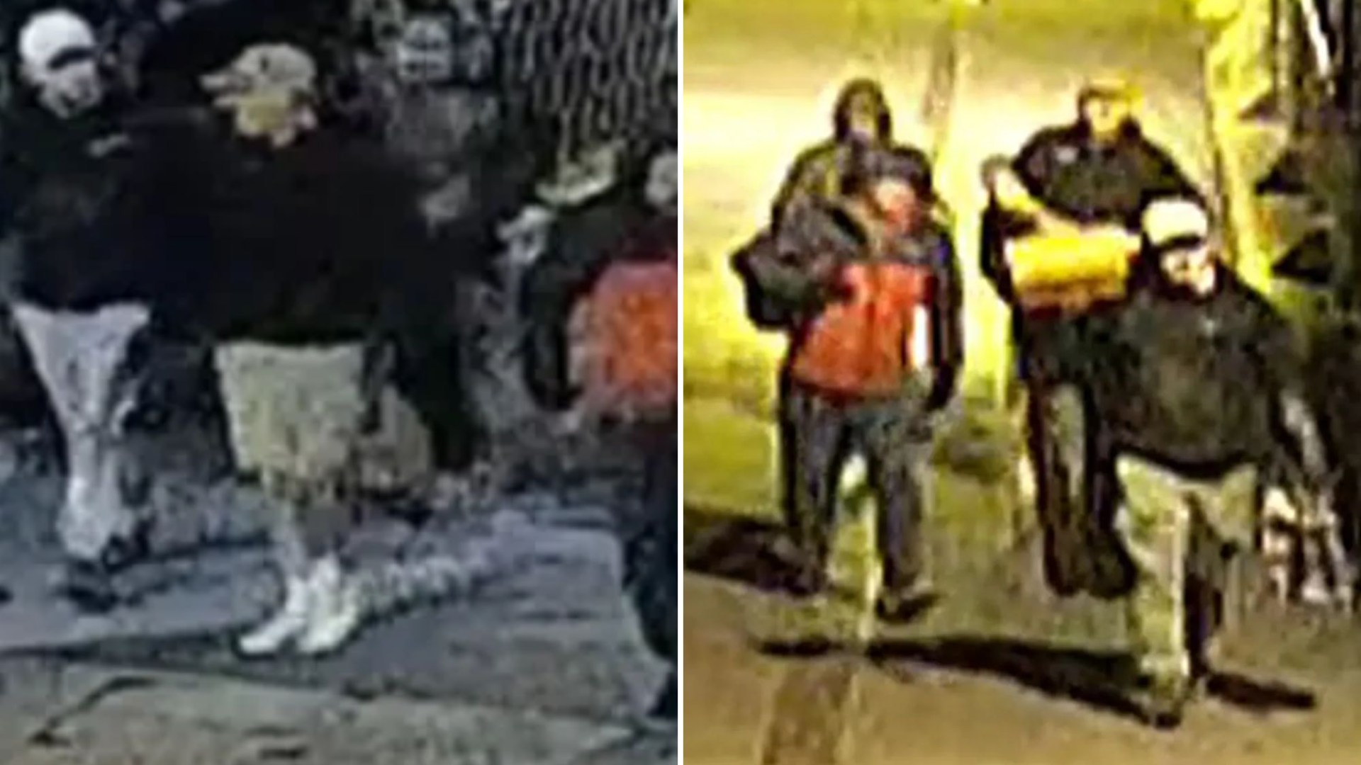 The fourth man was of large build, wearing a two-toned orange and navy/black puffed jacket, black trousers, and black and white trainers.